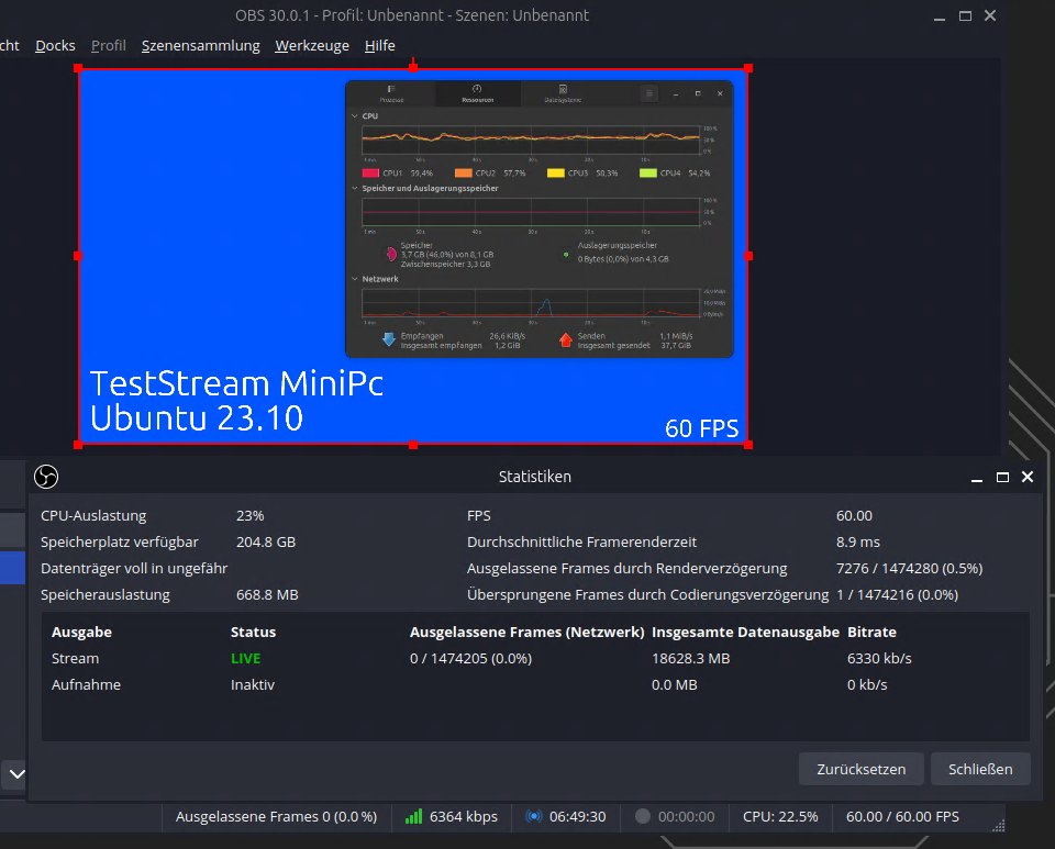 Ich versteh was du meinst, aber deine Definition von Homeserver ist mir etwas schwammig ... Ihr braucht dafür 2. Maschinen. Eine zuhause (OBS und Bot) und eine sonst irgendwo für den SRT/SRTLA Server ... also warum soll ich dann bei dem Test hier alles auf meinen MiniPC knallen? ist ja dann irgendwie kein realistischer vergleich ... oder ?